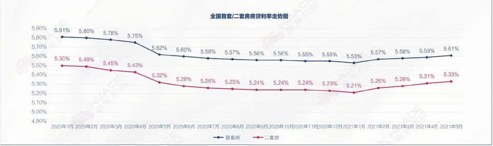 2021年5月,全國首套房平均貸款利率5.33%,環(huán)比上浮2%,二套房貸款平均利率5.61%,環(huán)比上漲2%,房貸指數(shù)連續(xù)4個月上浮,將增加客戶貸款購房成本,同時也能抑制投機行為,有利于控制房價漲幅過大等問題;