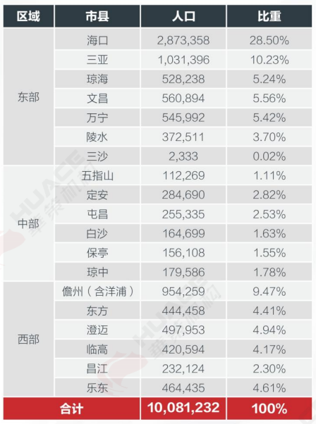 全省人口中,人口超過100萬人的市縣有2個,即海口和三亞,在50萬人至100萬人之間的市縣有4個即儋州市、文昌市、萬寧市和瓊海市,與2010年普查相比,全省19個市縣中有16個市縣人口增加,其中,海口增長40.43%,三亞增長50.48%。