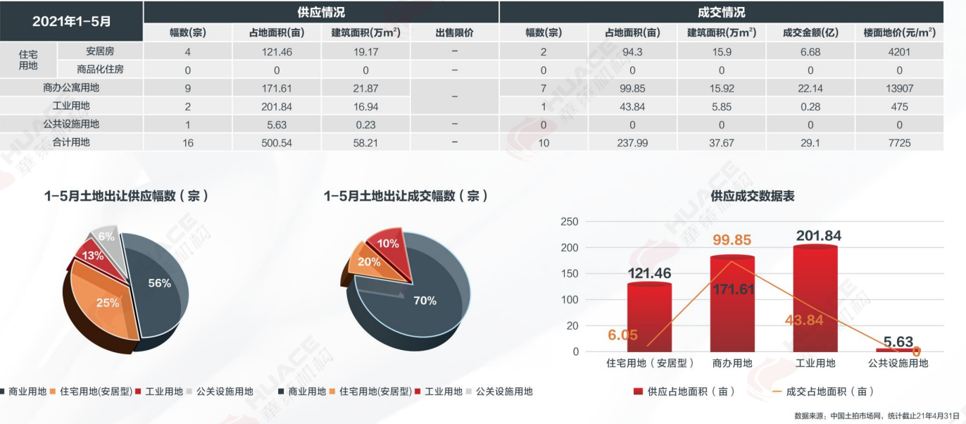 土地市場:2021年1-5月共成交土地10宗,成交面積237.99畝