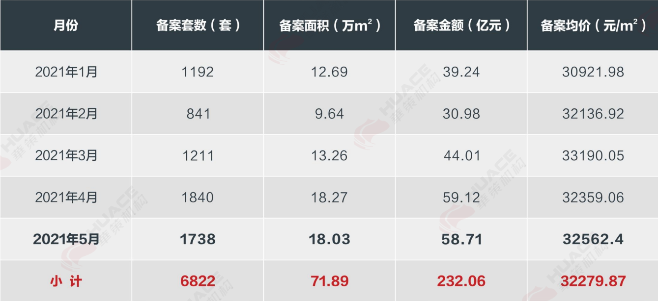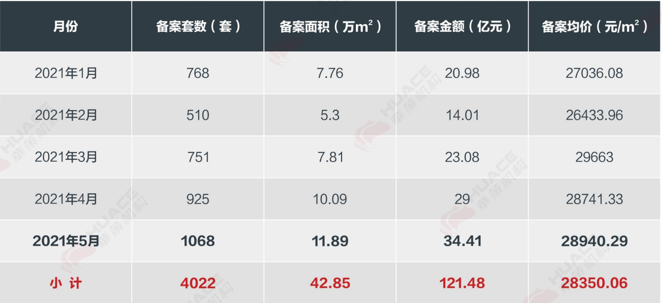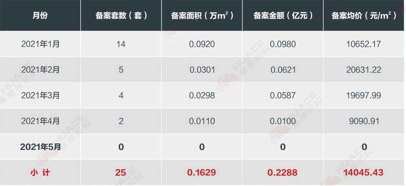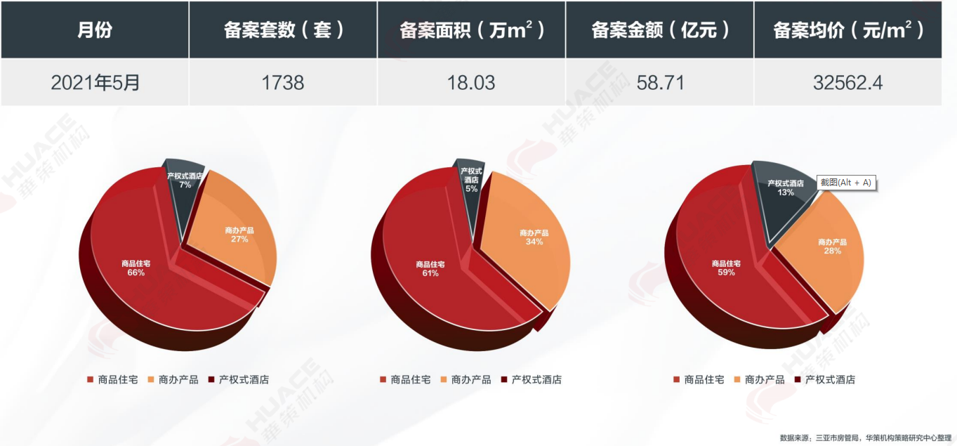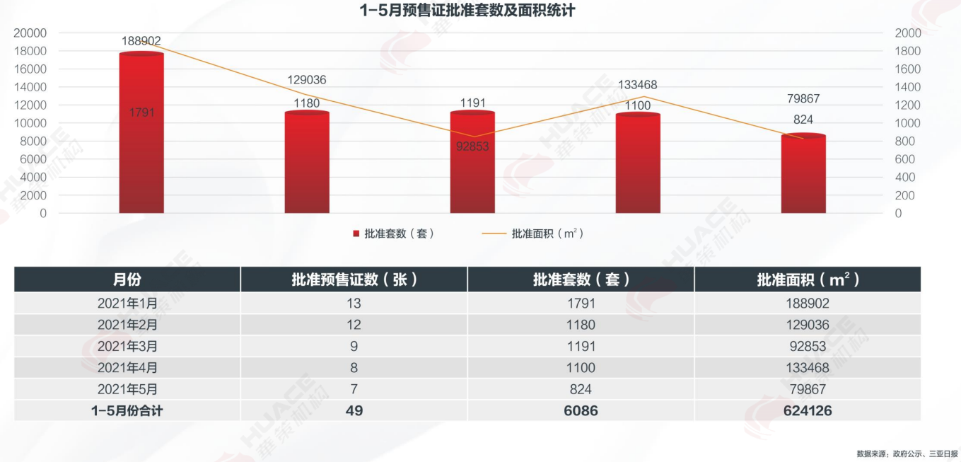 2021年5月批準預售證7張,其中住宅450套、辦公產品302套,商業72套,產權式酒店本月無新増。