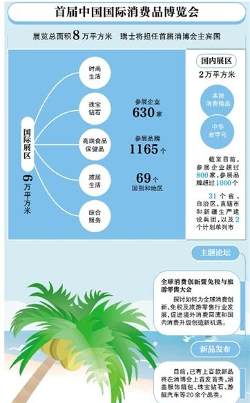首屆中國國際消費品博覽會將于5月7日至10日在海南省海口市舉行。消博會分為國際、國內(nèi)兩個專區(qū)。國際展區(qū)分為時尚生活、珠寶鉆石、高端食品保健品、旅居生活和綜合服務(wù)五大專業(yè)展區(qū),目前匯集了1165個國際品牌。在國內(nèi)展區(qū),全國各個地方正在組織消費精品和老字號參展,到目前為止,報名參展的品牌數(shù)也超過了1000個。