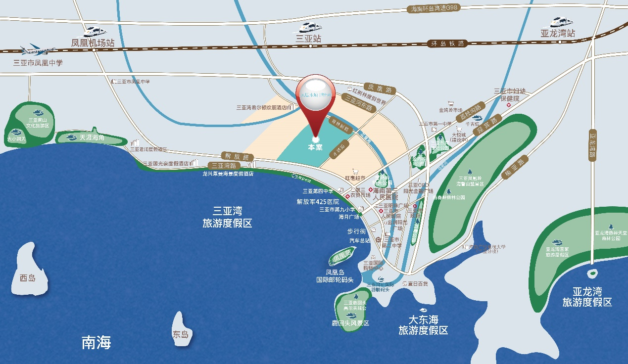 項目位于三亞灣和三亞市區的雙核心位置,交通便捷,生活旅游配套環伺。