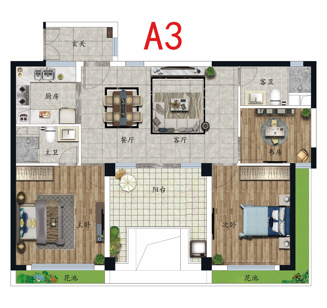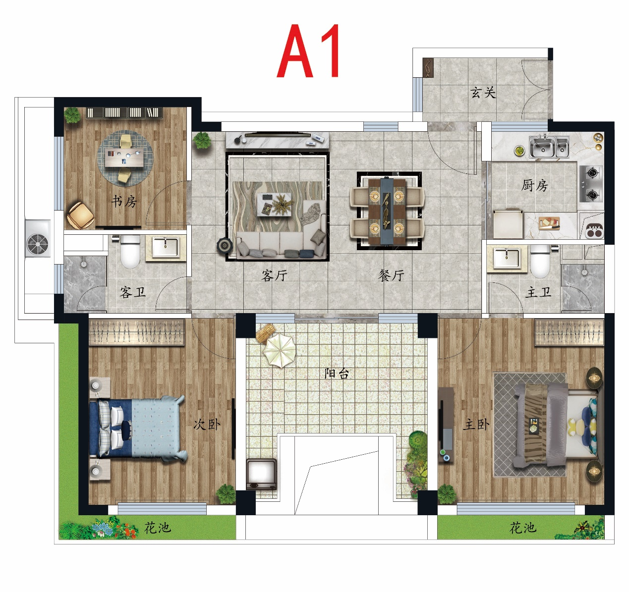 【產品戶型】:面積約101㎡三房兩廳兩衛(標準層)、面積約165㎡四房兩廳兩衛(頂層)