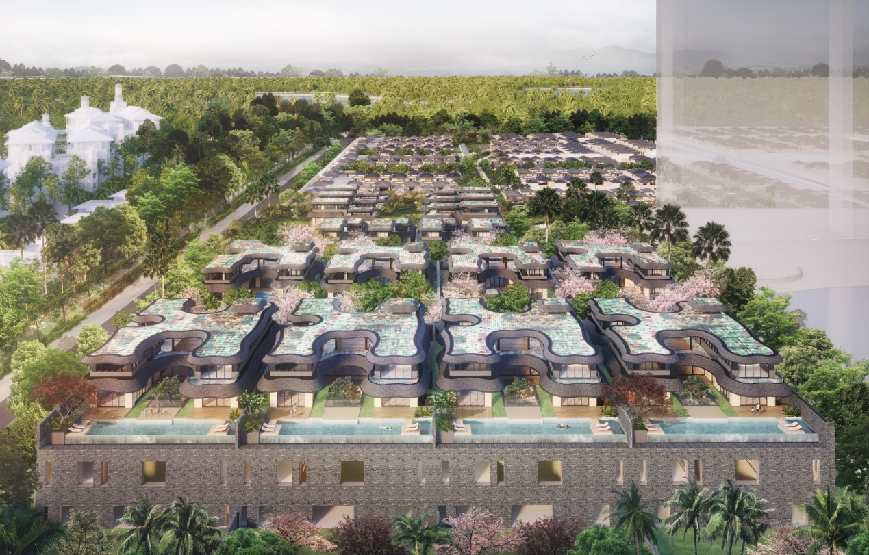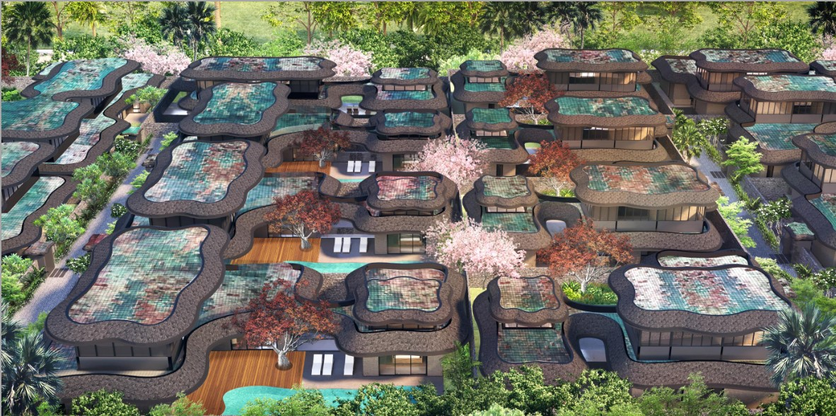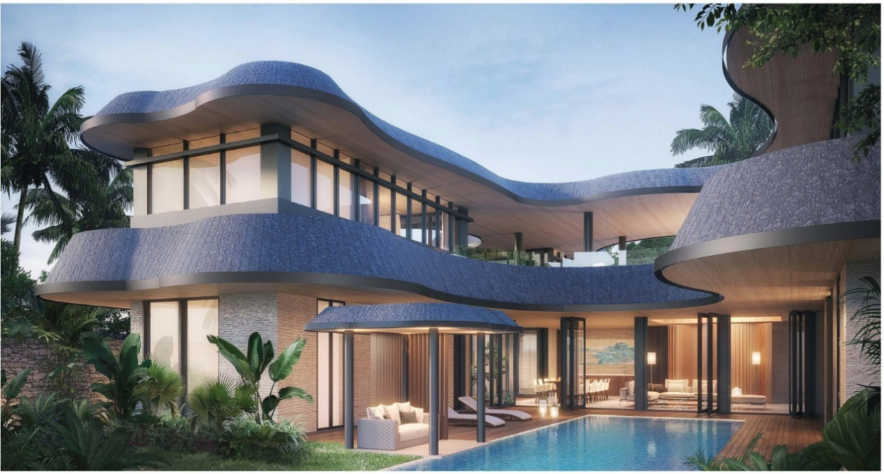 【全新四期 一線私享更親海】 海棠灣唯一珊瑚海主題院墅--曲線建筑造型設計四期屋頂外形如海浪一般頗具靈動性,以玻璃瓷釉通體馬賽克拼接,俯瞰視角形成一幅幅壯闊的海底珊瑚世界