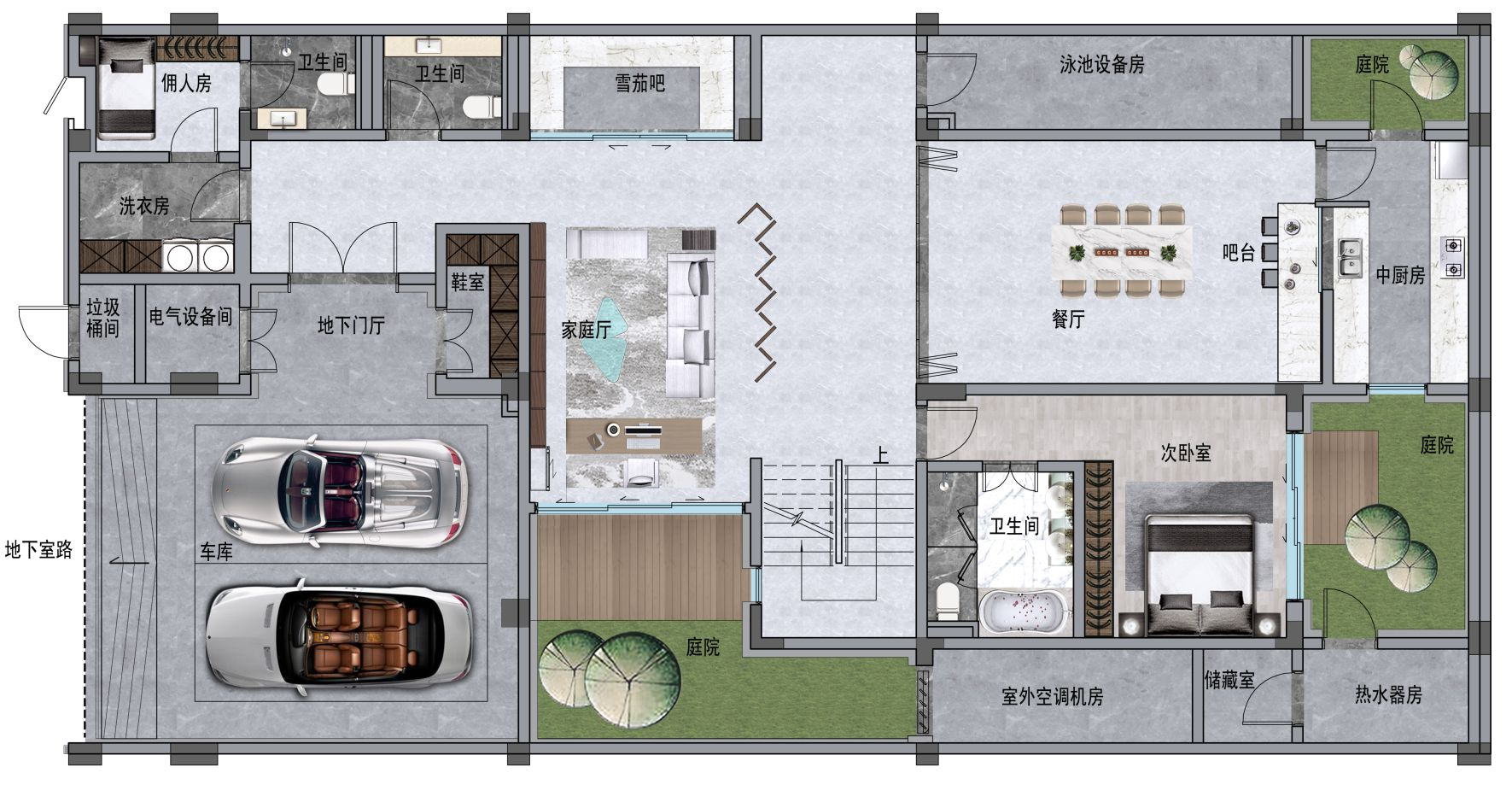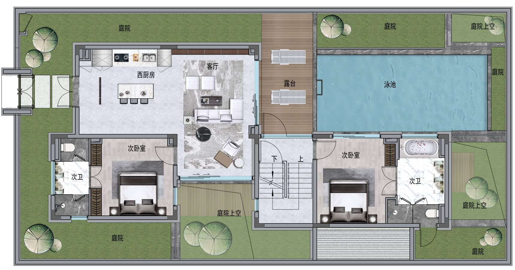 ·多功能娛樂空間打破傳統別墅/傳統度假式別墅,設置和室、酒窖、游戲室、桑拿等空間,兼具居住體驗與多樣化娛樂功能體驗。