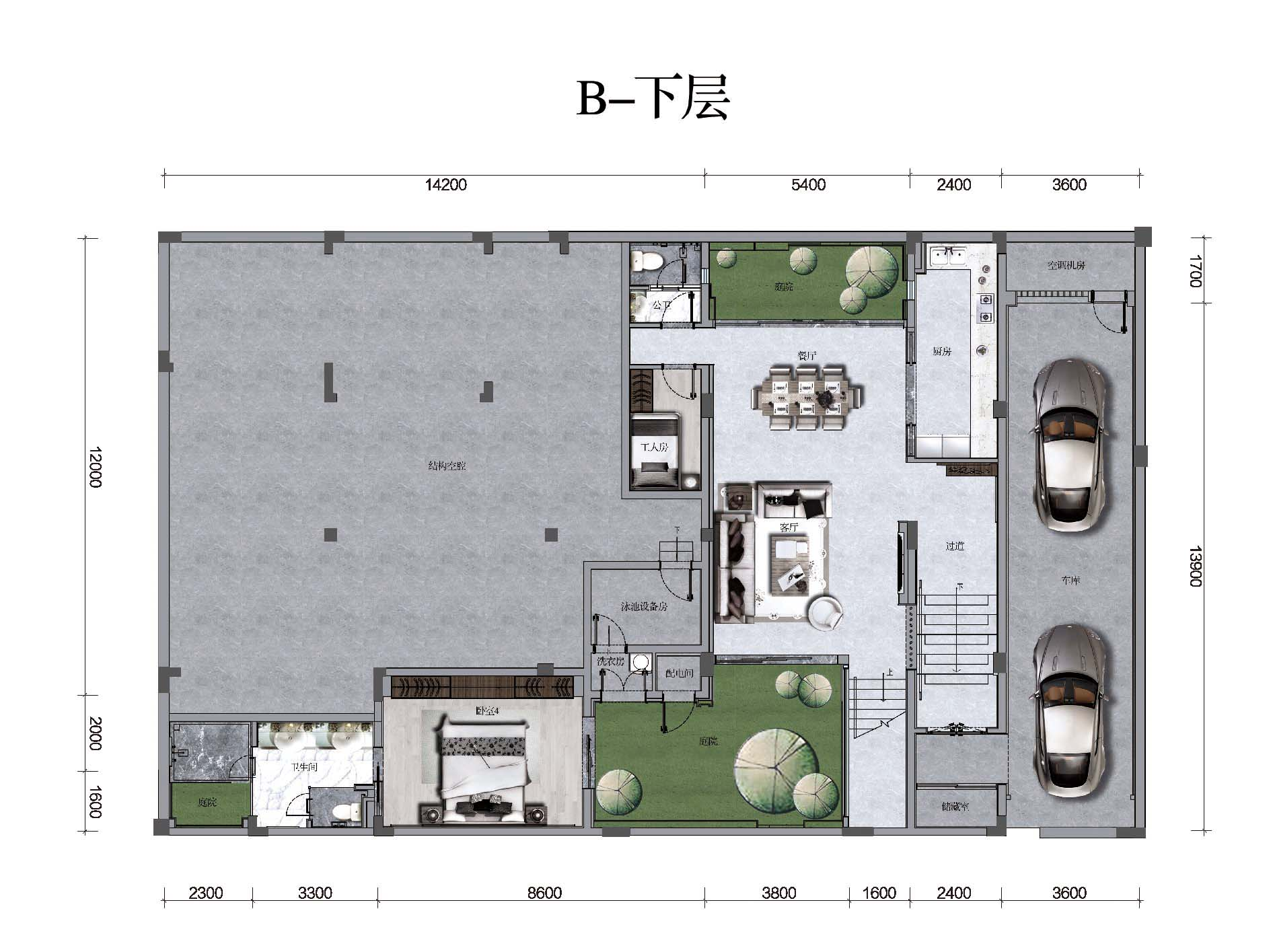 價格:5500-7200萬元/套 LG1層(1室2廳2衛1工人房)